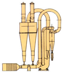工作原理 FG系列干燥機(jī)的工作原理是將濕物的干燥分為兩步完成。原料先由二級干燥之尾氣和散熱器的混合氣體進(jìn)行一級正壓干燥,使用后的低溫高濕尾氣排出機(jī)外, 干燥后的半成品由新鮮的熱空氣進(jìn)行二級負(fù)壓干燥,成品則進(jìn)行計量包裝。使用過的高溫低濕尾氣用作一級干燥,從而完成良好的循環(huán)干燥過程,補(bǔ)充的熱風(fēng)量可根據(jù)需要隨意調(diào)節(jié),因而機(jī)器適用性廣。